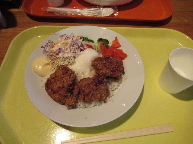 駐車場は駅前に行ってみたら満車だったので、大澤ゲレンデに駐車しました。なので大澤ゲレンデからスタートです。大澤ゲレンデを滑りホテル前へ移動。今回初めてのKS氏だったので、各コース・ゲレンデを滑ることにしましたが、全部は無理でした。とりあえず美奈ゲレンデからパノラマゲレンデへ移動。 | ![]() お昼のビーフカレー唐揚げトッピング |