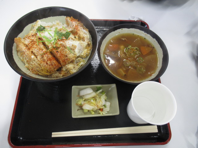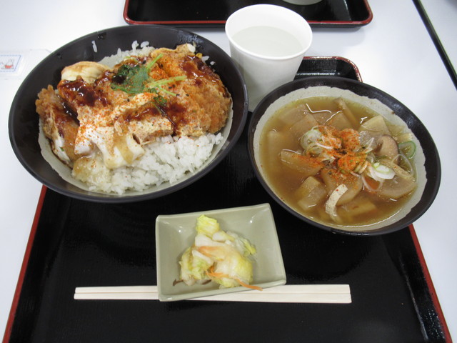 もう少し固い雪のほうが滑りやすいのにと思いました。 昼食はメインの食堂でカツ丼をいただきました。「けんちん汁セット」とありましたが、食べてみたらトン汁みたいでした。 |
