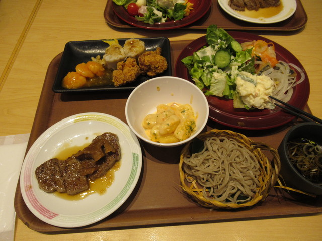 南エリアの各コース(滑れるところ)を滑りました。雪は暖かかったせいでべた雪でちょっと残念でした。 | ![]() 夕食に食べた色々 |