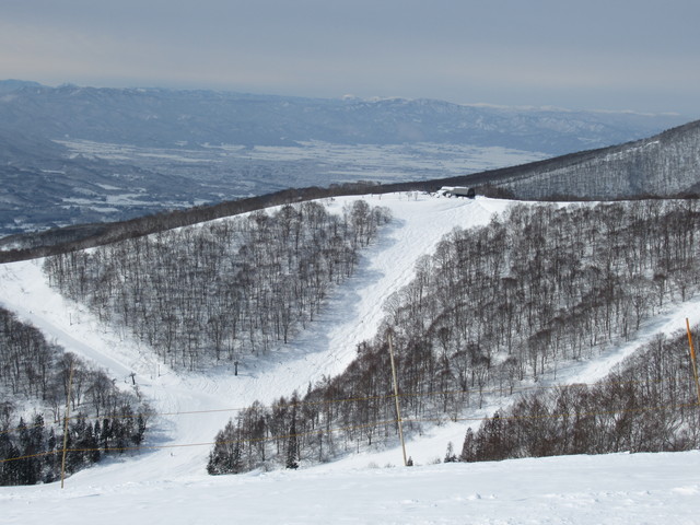 駐車場は「日の出ゲレンデ」近くの駐車場が空いていたのでそこにしました。「日の出ゲレンデ」をスタートし、「天狗ゲレンデ」~「シーハイルコース」~「表ダボスゲレンデ」~「奥ダボスゲレンデ」と滑って行きました。 | ![]() 奥ダボスからパインビーク方面 |