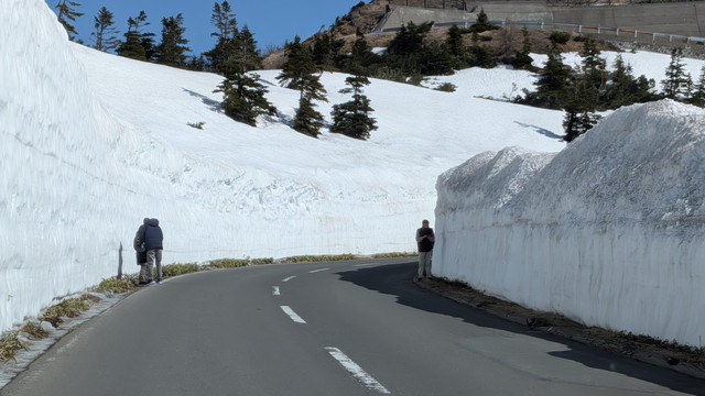 いつもの通りのコースで横手に向かうはずだったのが、雪崩のため群馬県側が開通とならず万座ハイウェイ(有料道路)を通っていくことになってしまった。距離的にはそれほど違いはないのだが、有料道路の料金(往復2,140円)が余分にかかってしまった。 雪の回廊は去年より雪が多いせいか高く感じられた。 |