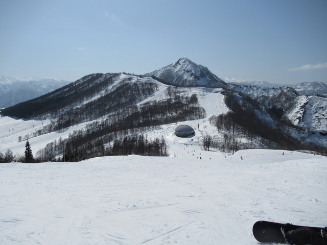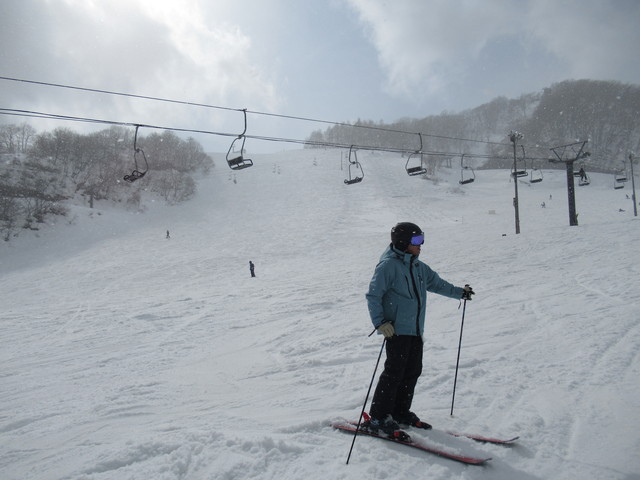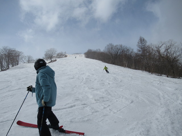 リフト券は午前券7200円なり、高い。しかも全面滑れるわけではなく上部のみ。中部ではパノラマとスカイライン、リーゼンでした。上部の兎平や黒菱は問題なく滑れました。しかも雪が良く締まっていて、滑ると気持ちいいくらいです。 |