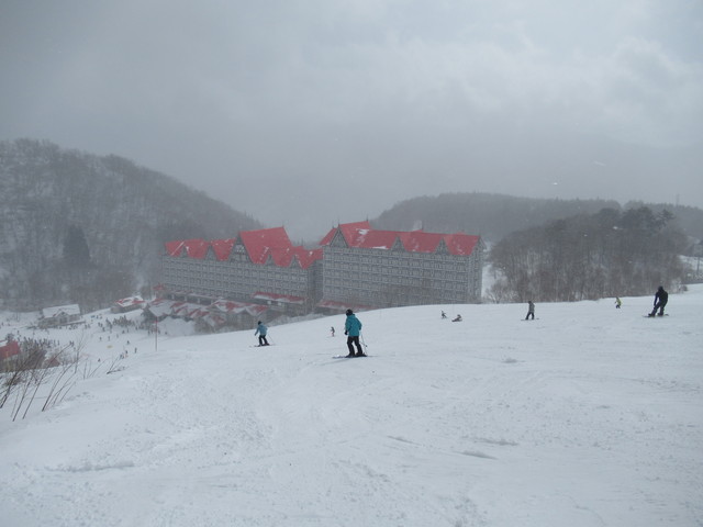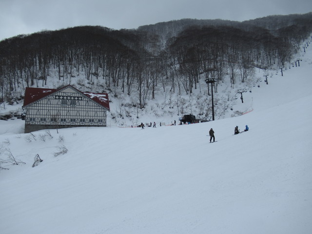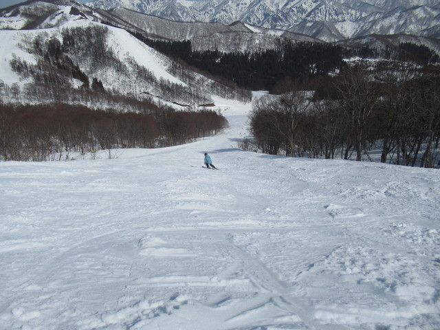 帰りの時間が迫っているので、リーゼンに向かいます。リーゼンは1回滑っていますが、上部は滑りやすく下部は滑りにくいという感じで、最後なのでけがの内容に注意して滑ります。 |
