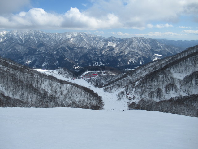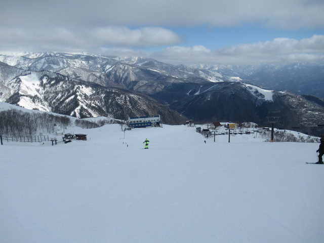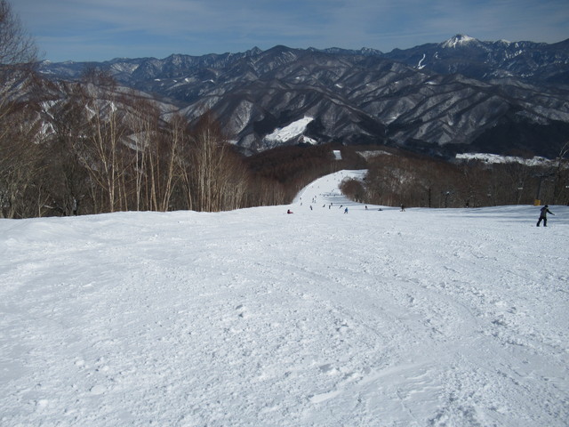 遠くに見えるスキー場は丸沼スキー場。帰ってからわかったんですが、丸沼スキー場でスキーヤーとボーダーの衝突事故があり、スキーヤーがなくなったということです。スキーもボードもスピードを出しすぎないように、また周りに注意しながら滑りましょう。 |