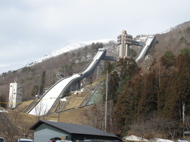 最後の日は、チェックアウトを済ませ、名木山ゲレンデの近くに車で移動して、名木山ゲレンデからスタートです。ほかにはゴンドラしかないんですけどね。下まで滑ってこられるのは名木山だけみたいです。 | ![]() ジャンプ台 |