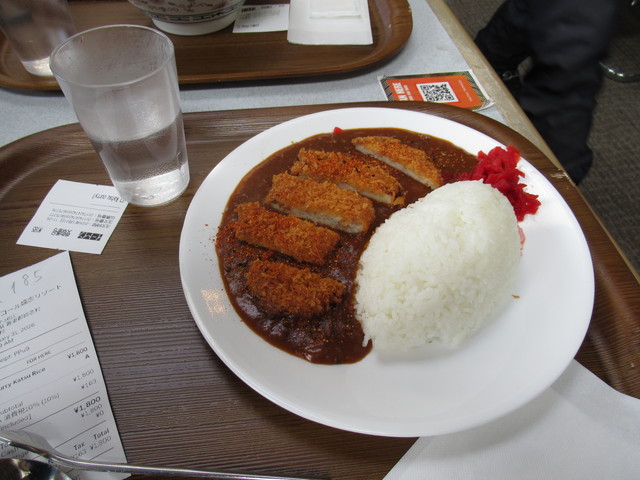 薄日が差したり、降ったり、晴れたりと変わりやすい天気でした。ただ気温は低く、リフトに乗っていると凍えるような寒さでした。おかげで雪は良かったと思います。 | ![]() お昼のカツカレー |