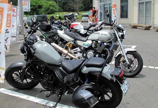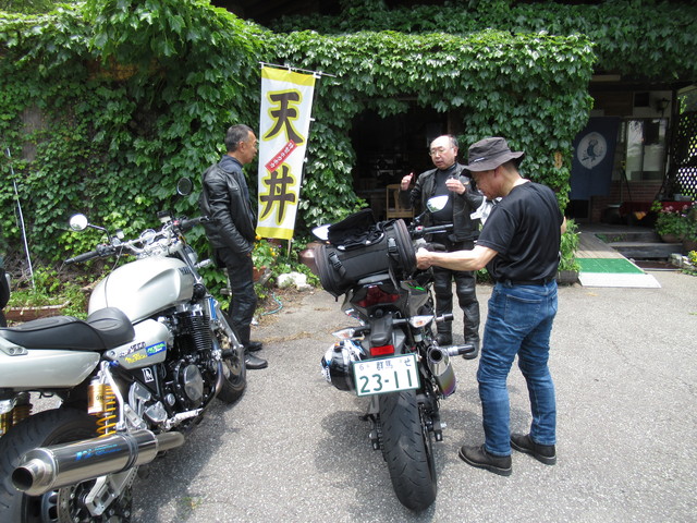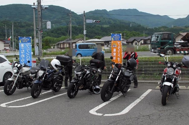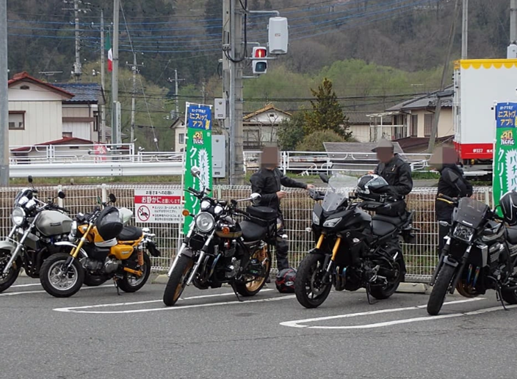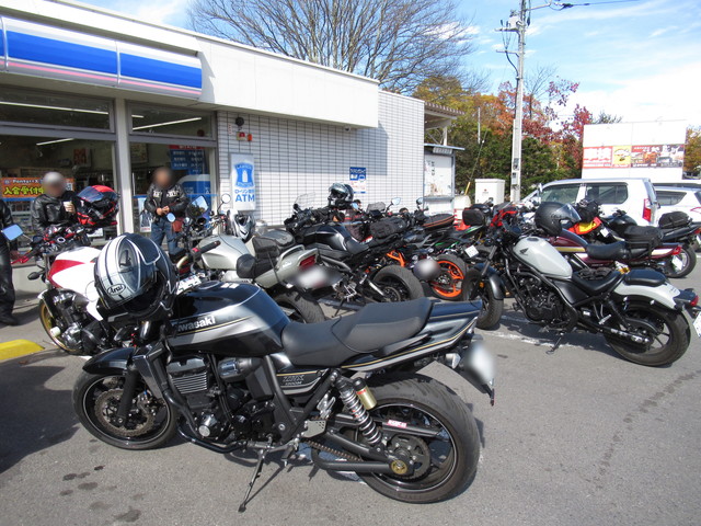 集合場所のコンビニに着くと、すごい数のバイクがいて、仲間がどこにいるのかよくわかりませんでした。やっと探し出すとすでに3人が来ていました。しばらく待っていると残りの3人も到着して、いよいよ出発です。 | ![]() 休憩したコンビニ |