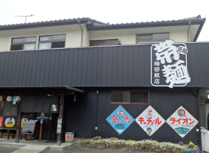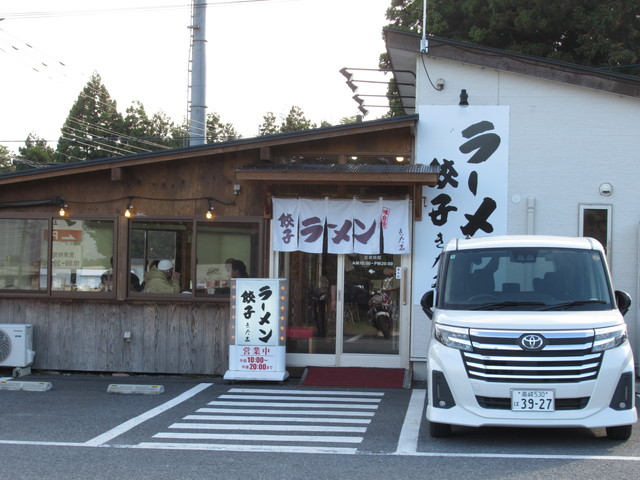 集合場所はいつものコンビニで、到着したときにはすでに3人がいました。10時ちょっとすぎに出発して、梅田飯店には12時近くに到着でした・駐車場はいっぱいで入り口付近には人が何人かいます。 | ![]() お昼の中華そば |